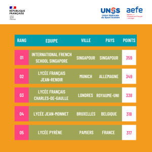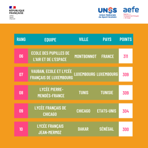 14 | Lycée français Gustave Eiffel | Budapest | Hongrie | 277 | |